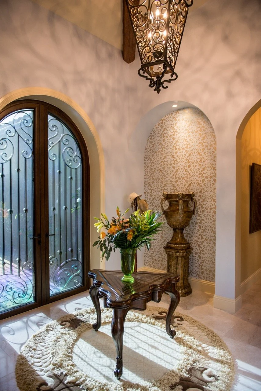 Mediterranean-inspired homes with stucco exteriors, archways, and red tile roofs