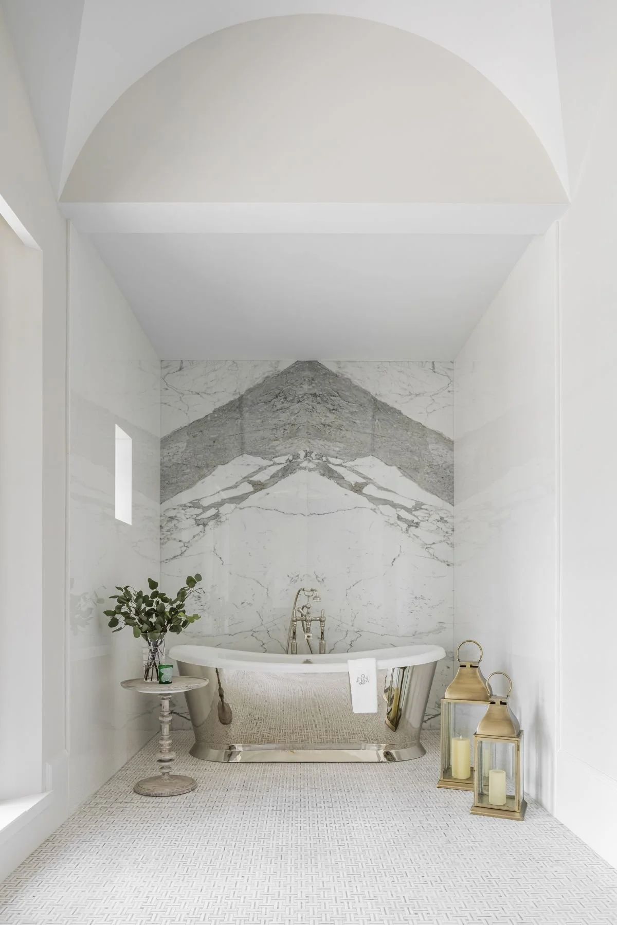 Natural finishes such as white oak flooring, marble surfaces, and fine custom cabinetry